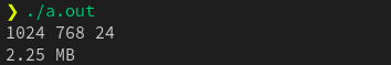 #include <stdio.h> int main() { unsigned int w, h, b; float mb = 0; scanf("%d %d %d", &w, &h, &b); mb = w * h * b /8 /1024 /1024; printf("%.2f MB\n", mb); return 0; }